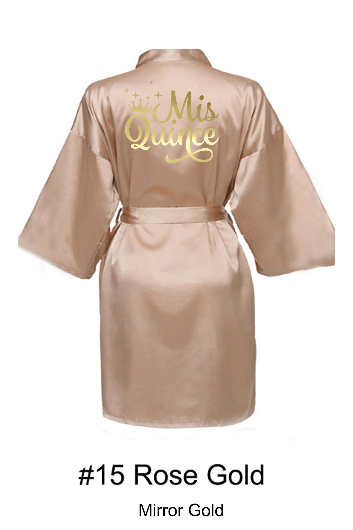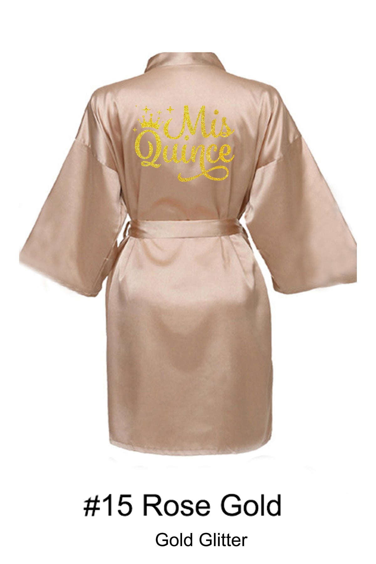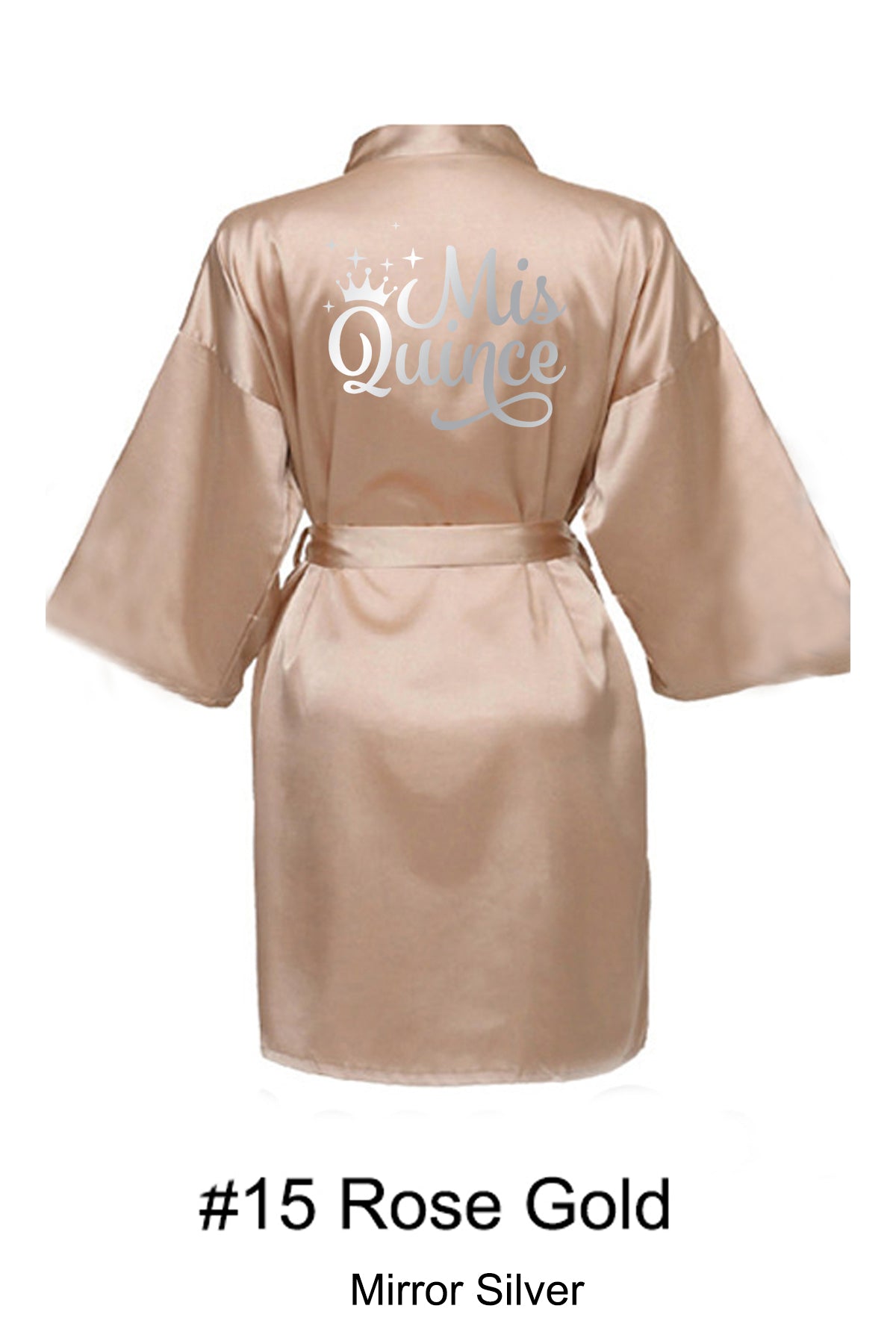 Comfy satin getting-ready robe that the quinceañera will love to wear long after your event.
