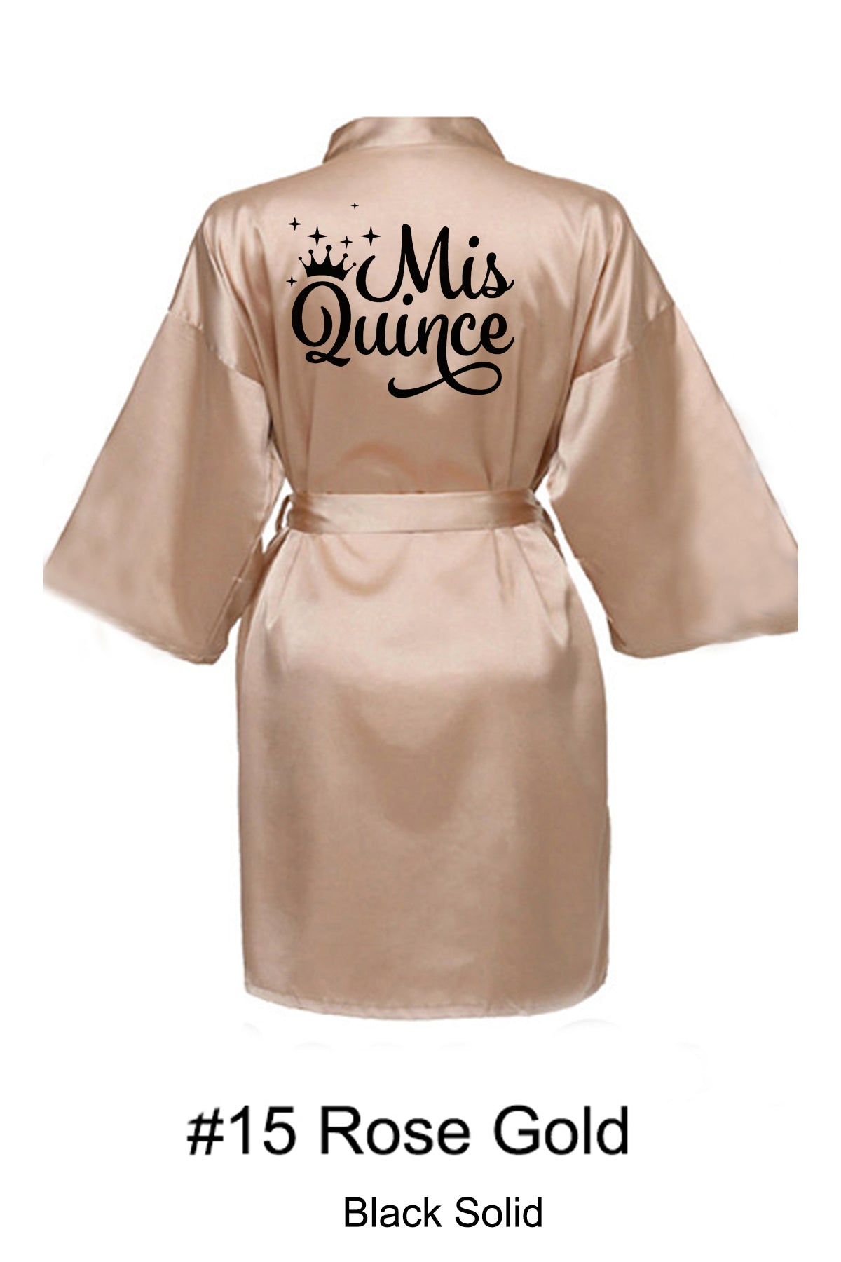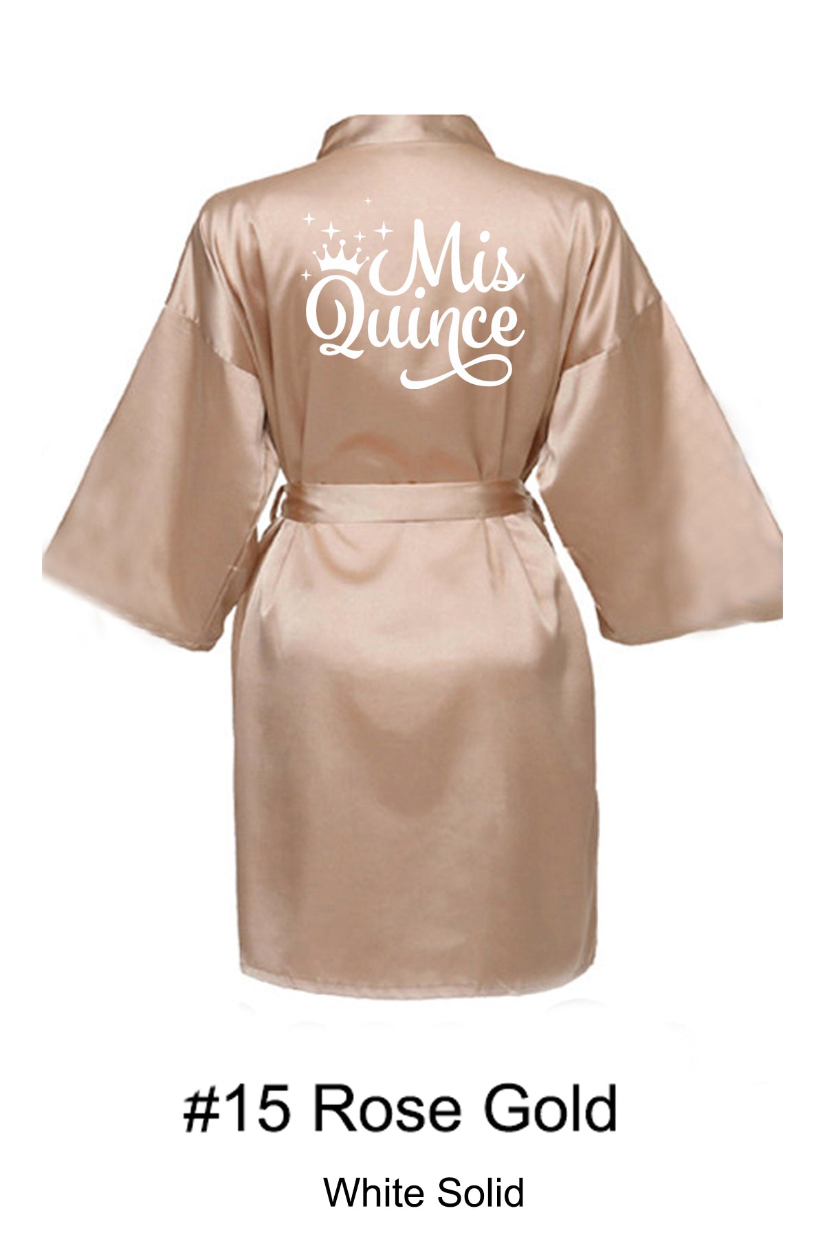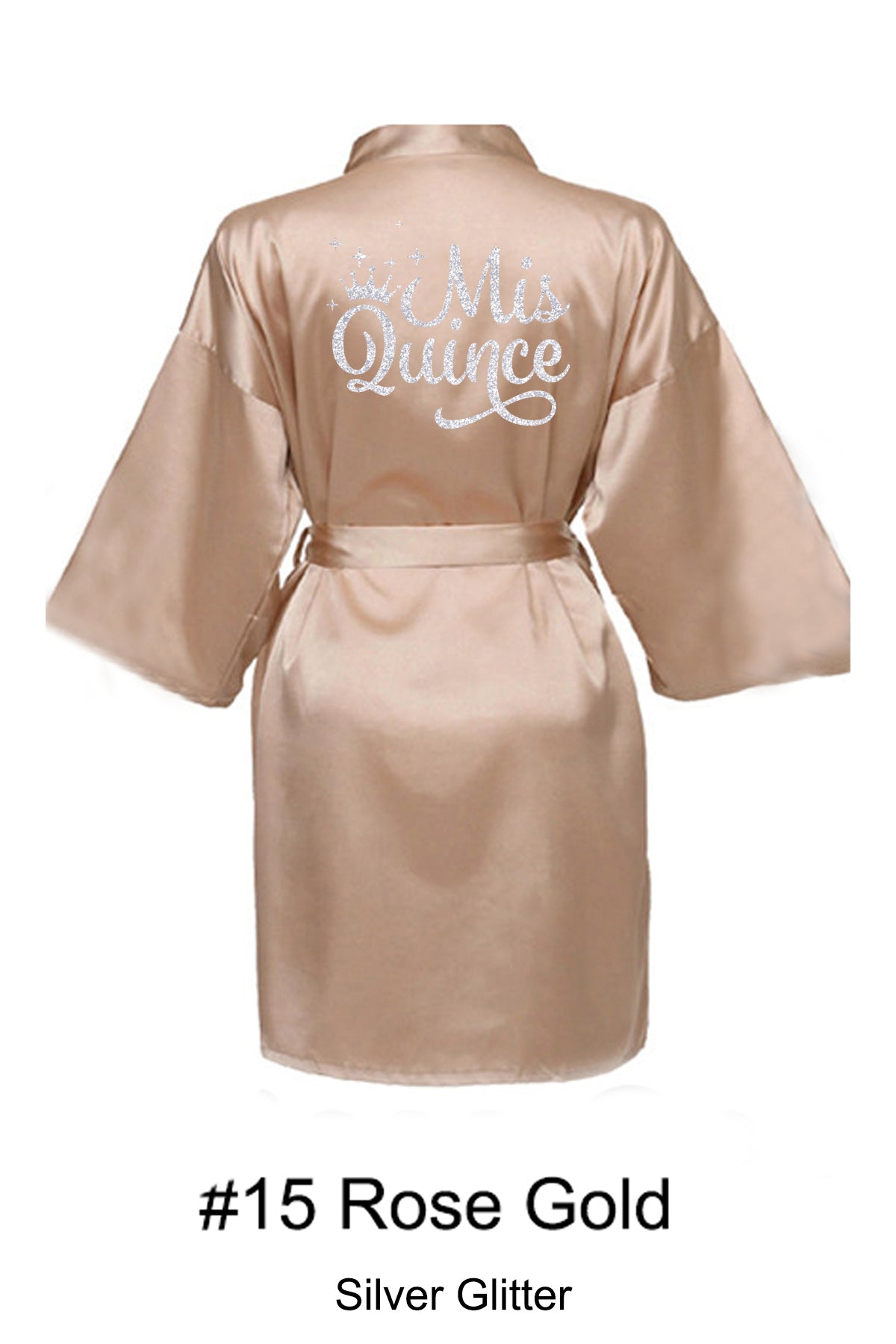 Comfy satin getting-ready robe that the quinceañera will love to wear long after your event.