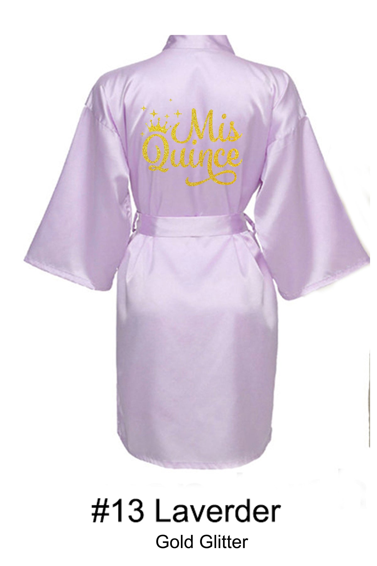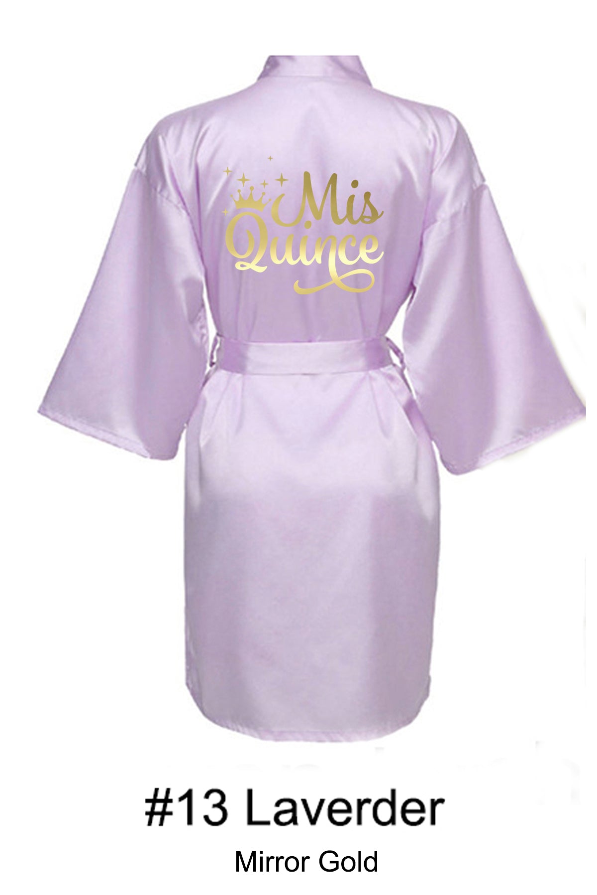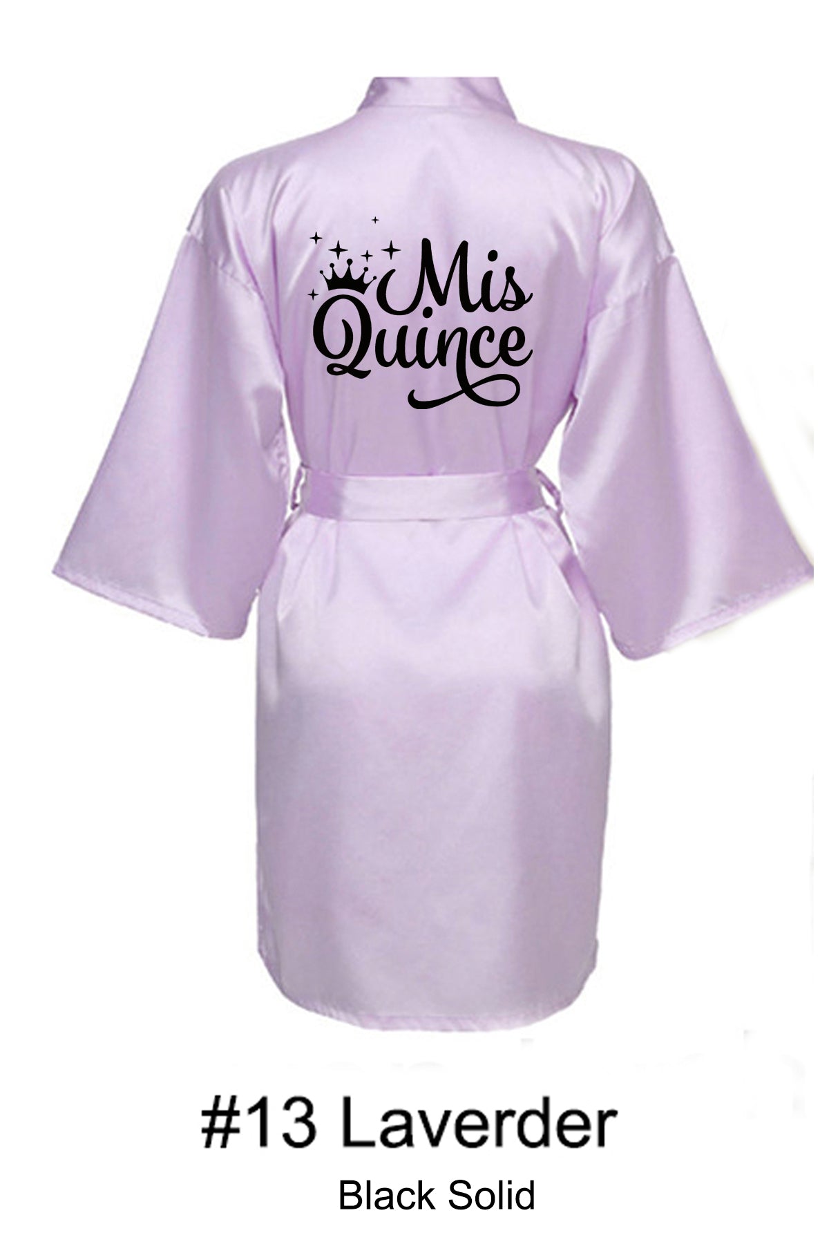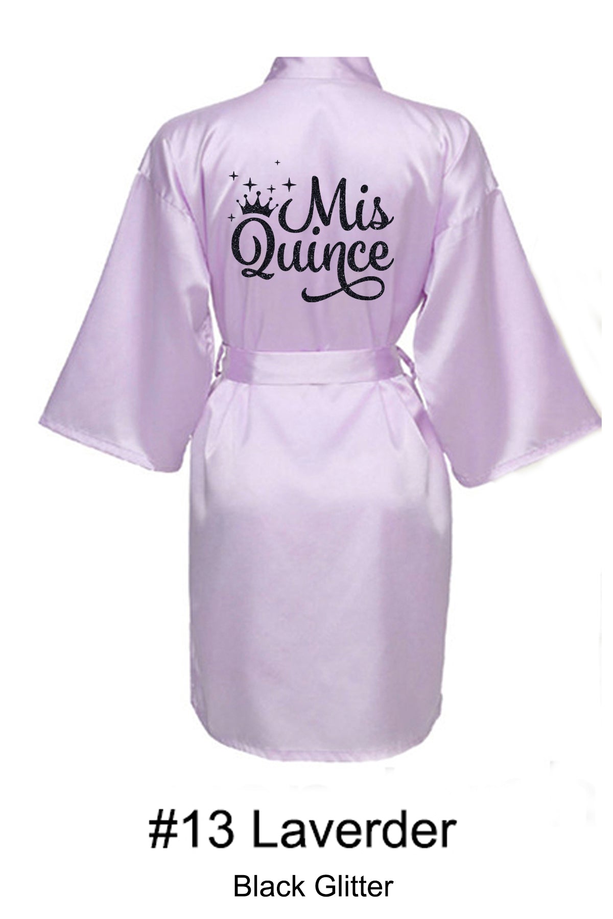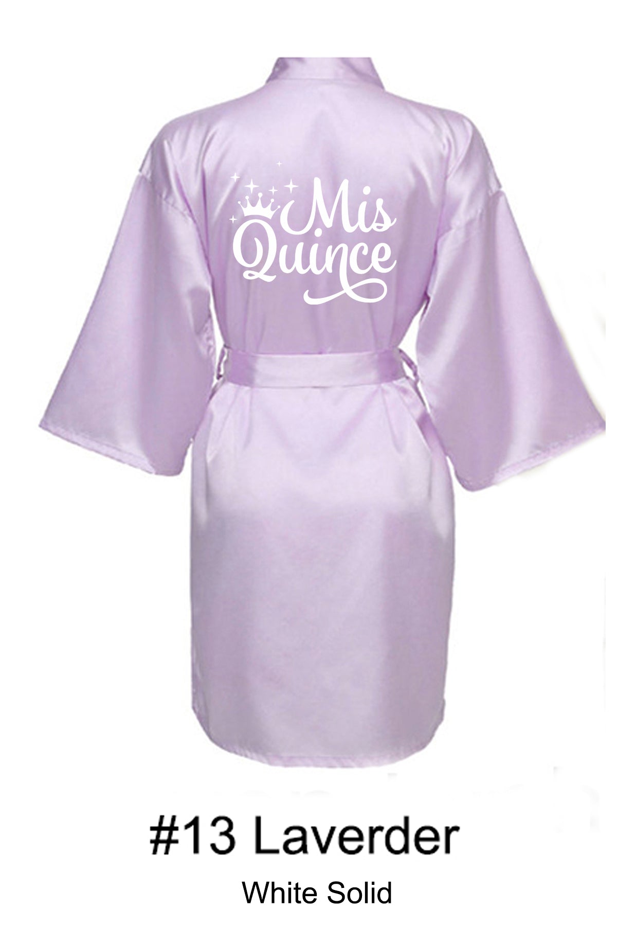 Comfy satin getting-ready robe that the quinceañera will love to wear long after your event.