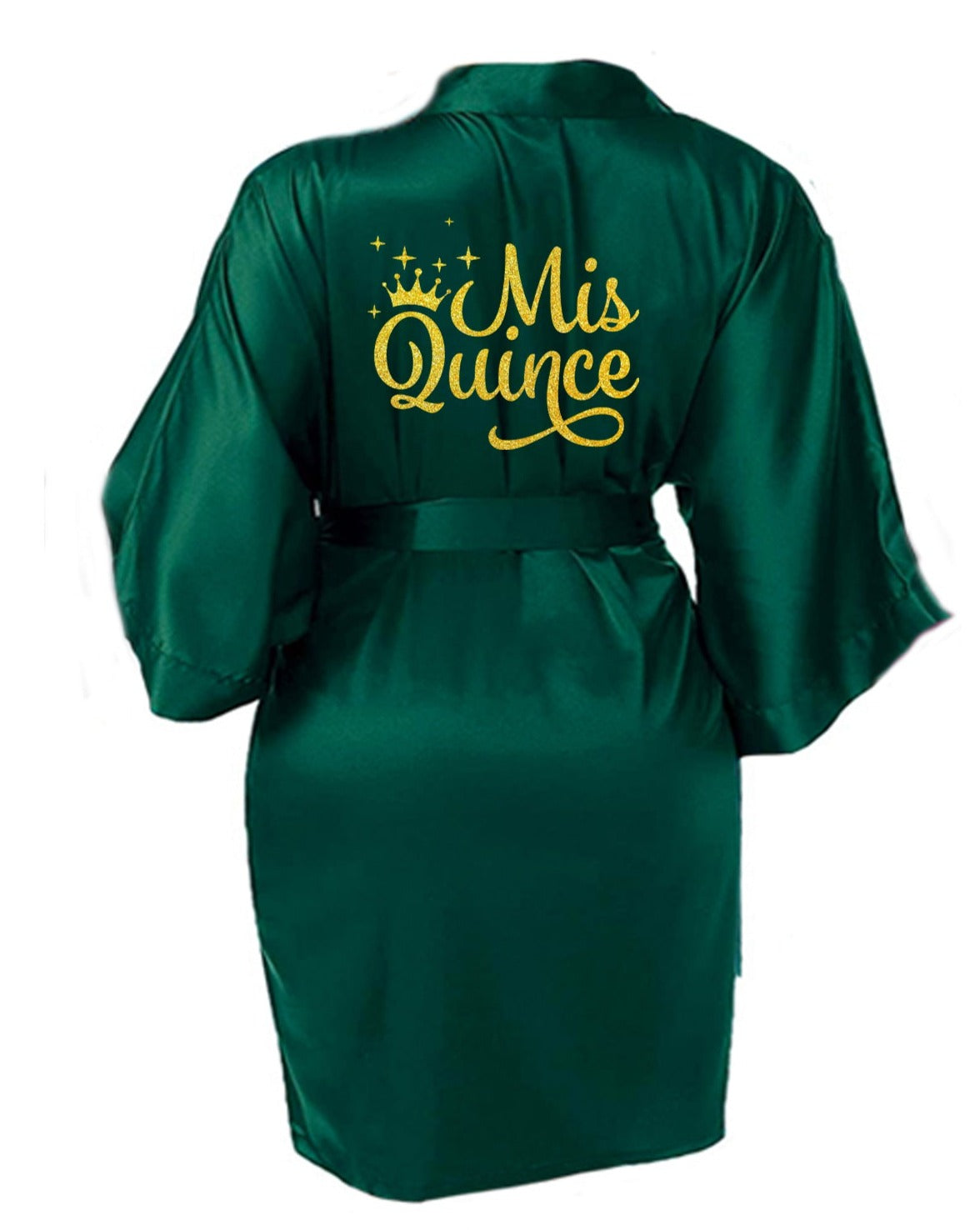 Comfy satin getting-ready robe that the quinceañera will love to wear long after your event.