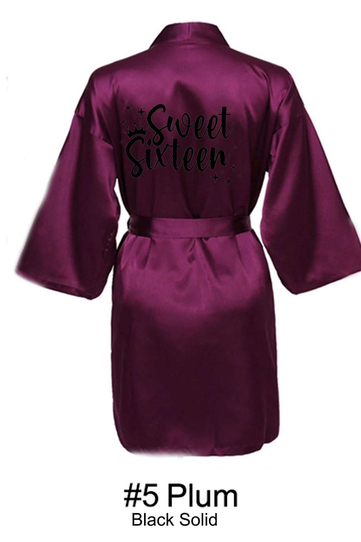 Comfy satin getting-ready robe that the sweet 16 will love to wear long after your event.