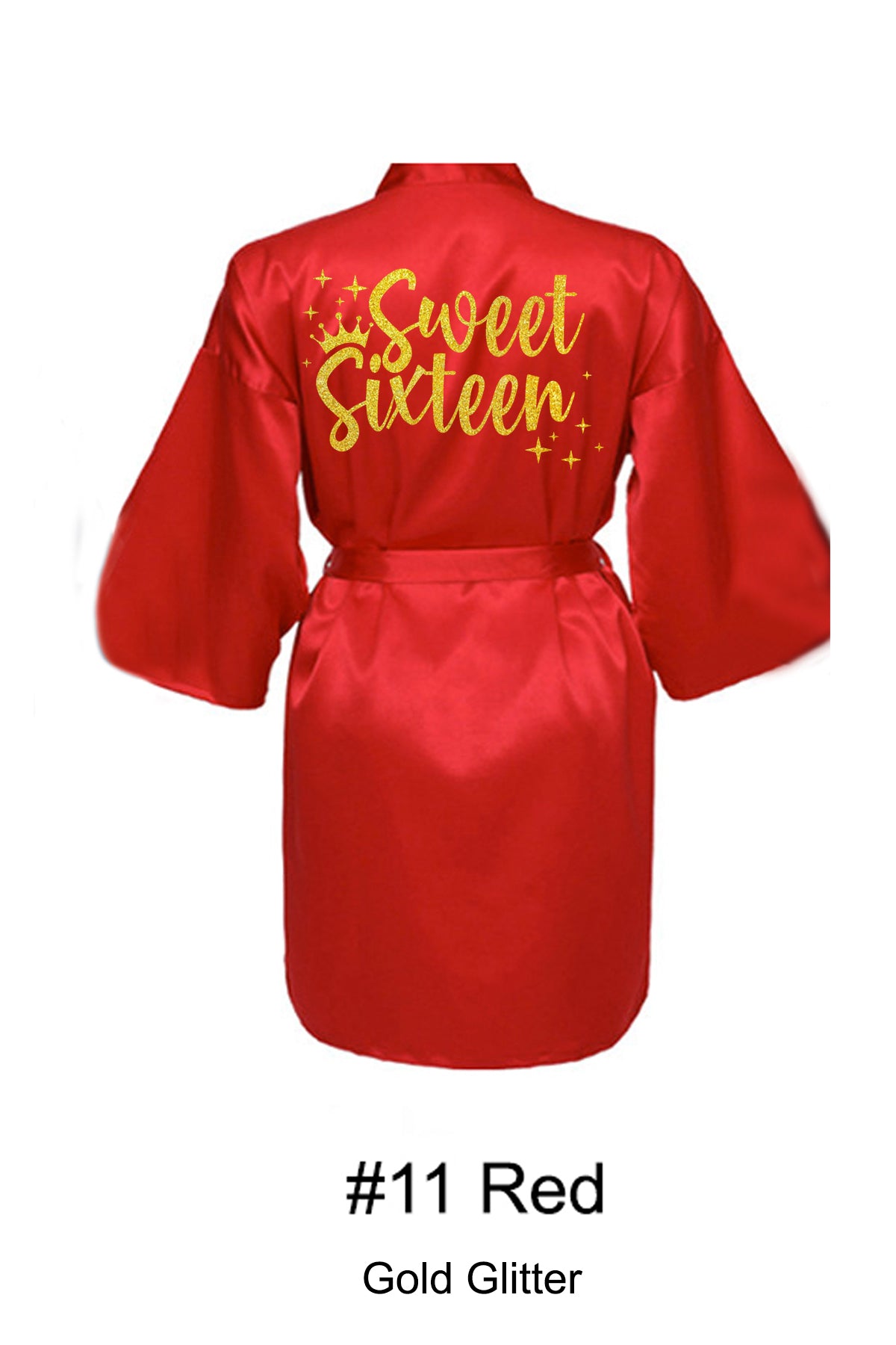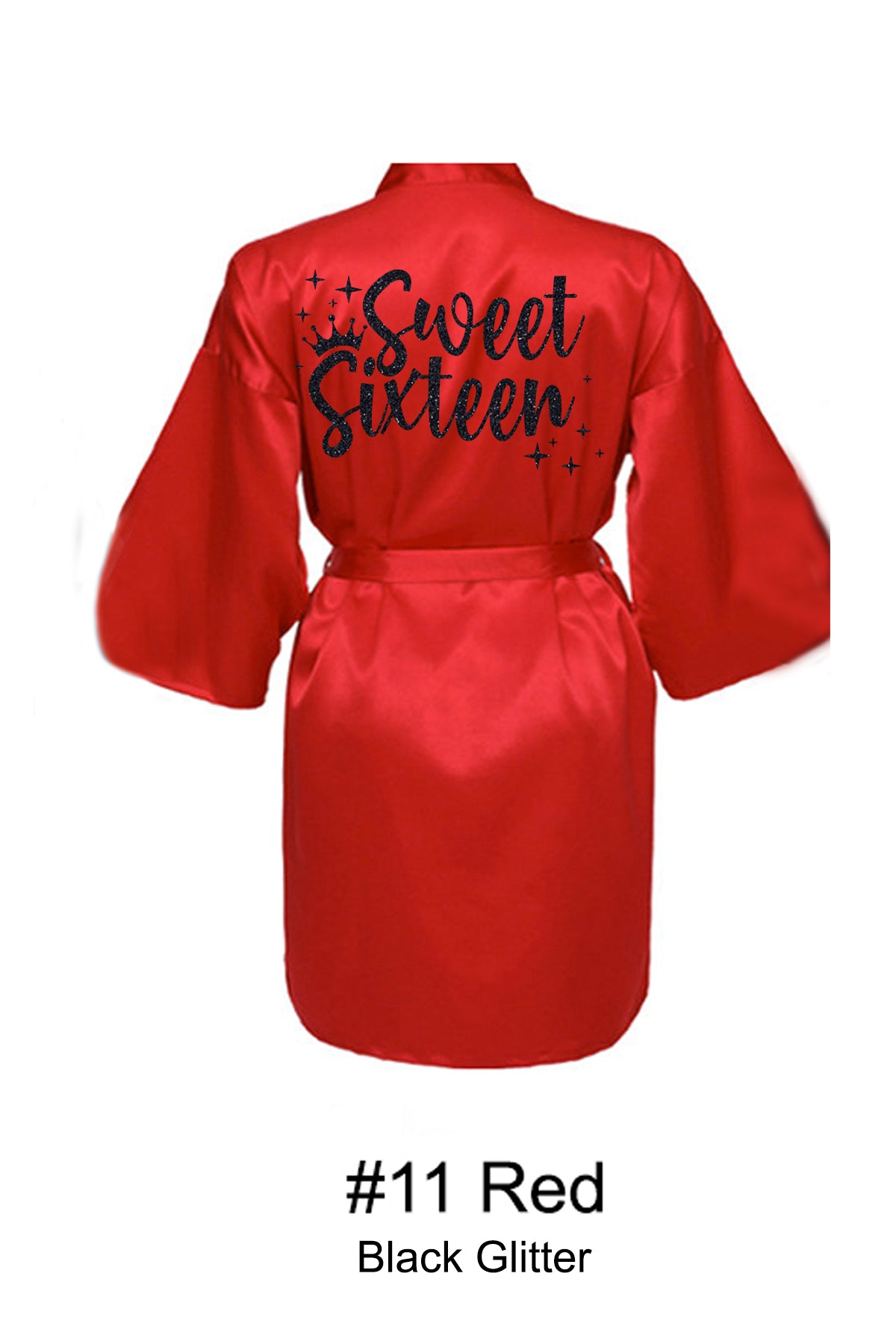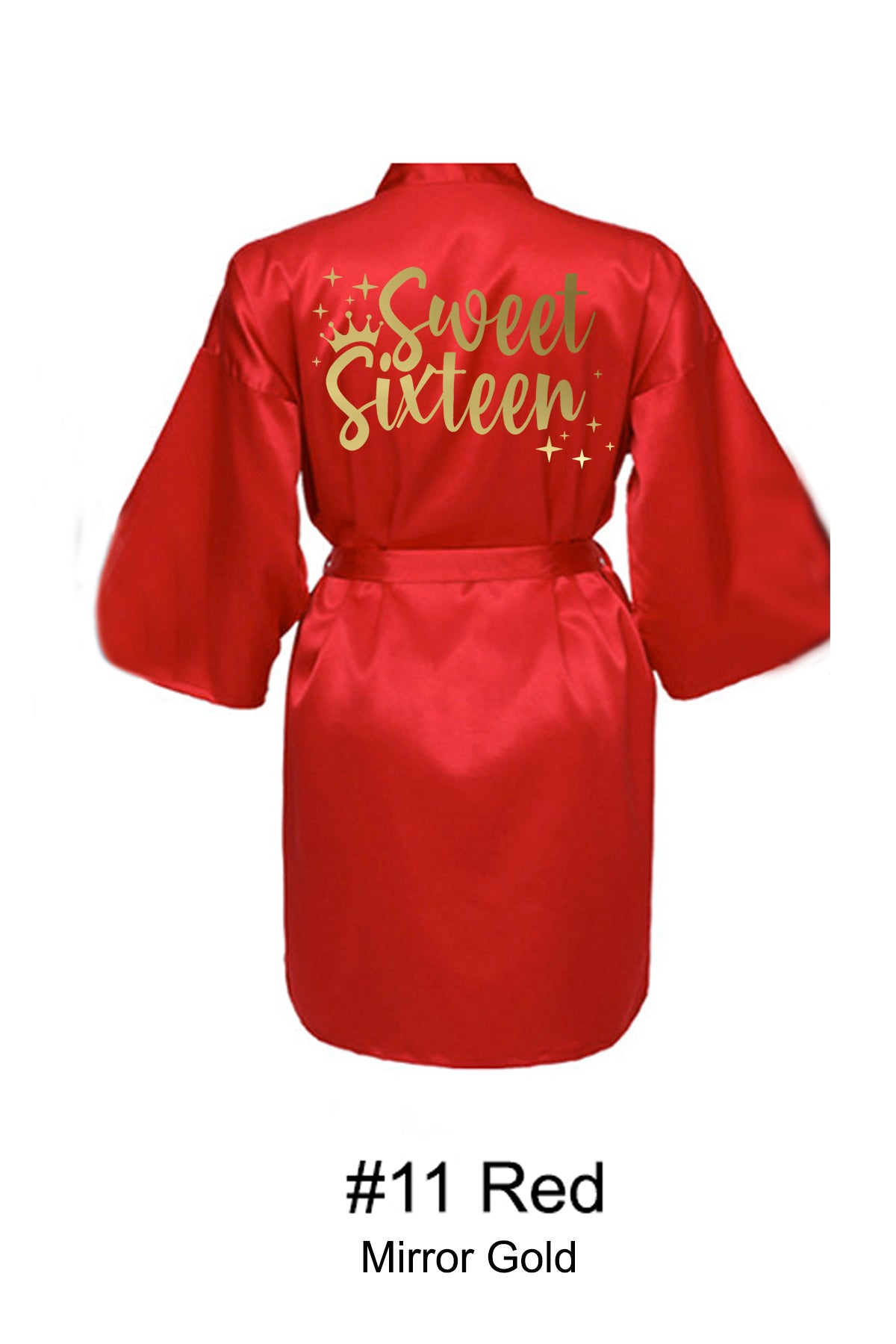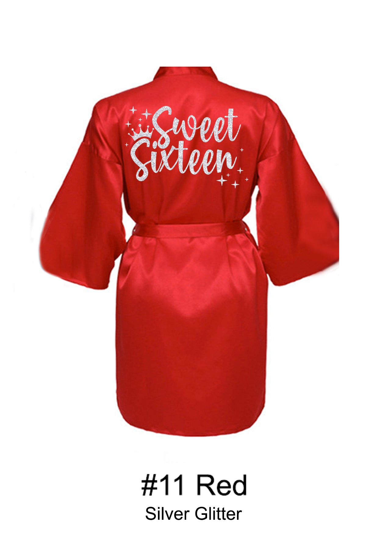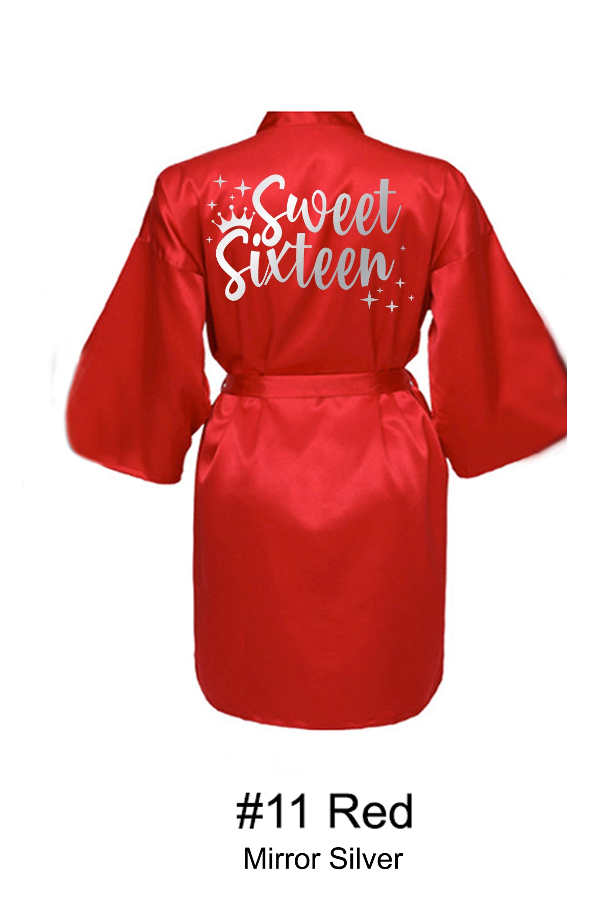 Comfy satin getting-ready robe that the sweet 16 will love to wear long after your event.