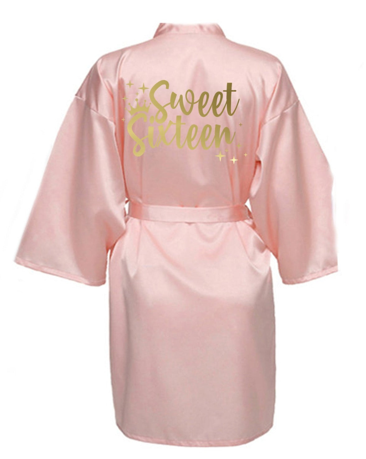 Comfy satin getting-ready robe that the sweet 16 will love to wear long after your event.