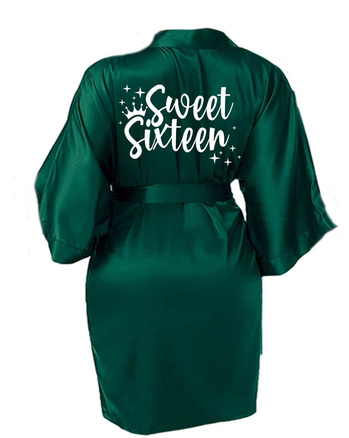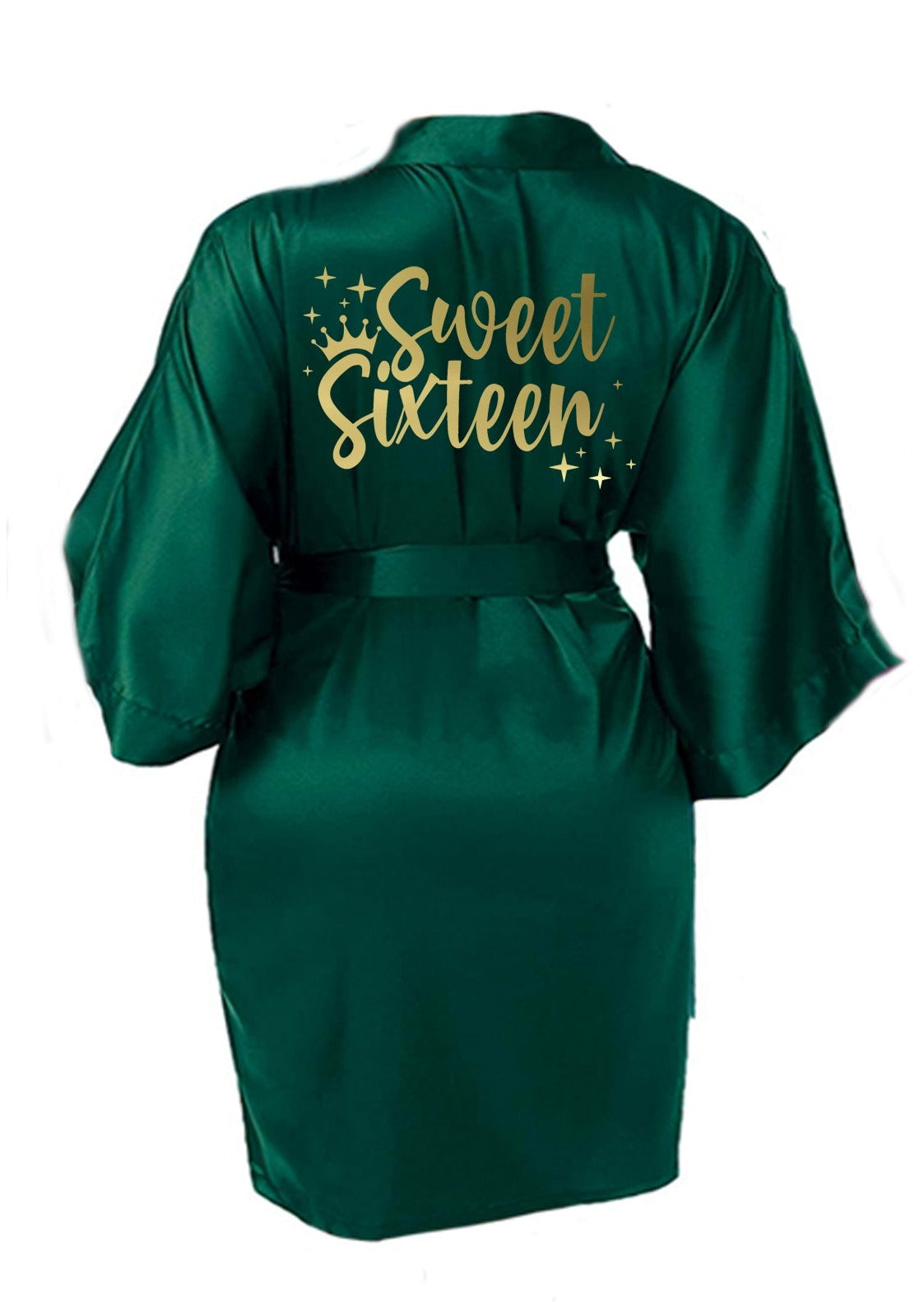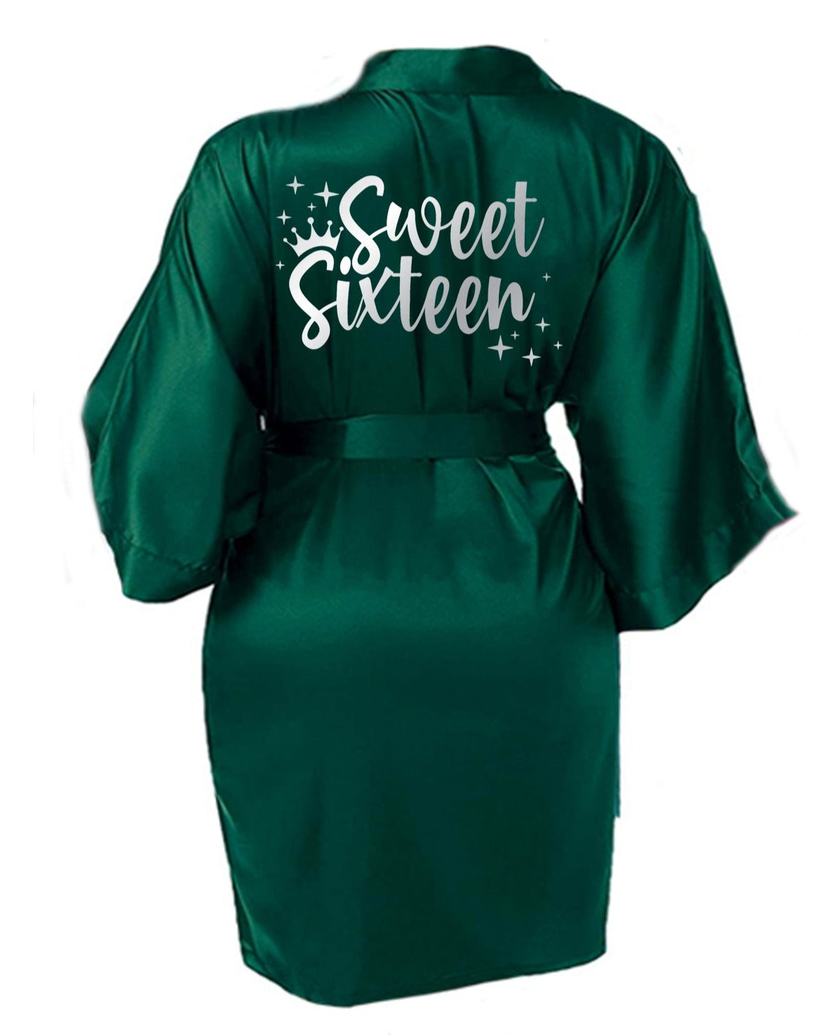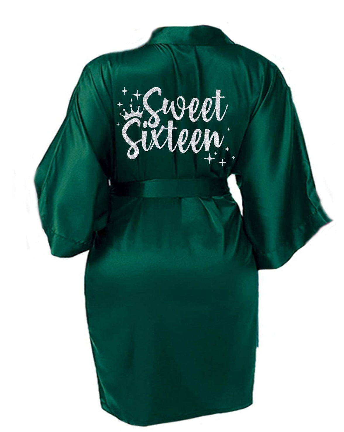 Comfy satin getting-ready robe that the sweet 16 will love to wear long after your event.